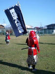 指定された場所で甲冑に着替えたのですが、なにしろ自分で着るのは初めて(笑)なので戸惑う。やむなく他の自前甲冑の方に手伝ってもらう。