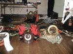 小学校の体育館に並べられた甲冑や衣装の数々。この中から本日着用の甲冑を探したのですが、ありません。義経や頼朝、弁慶役はあったのですが。